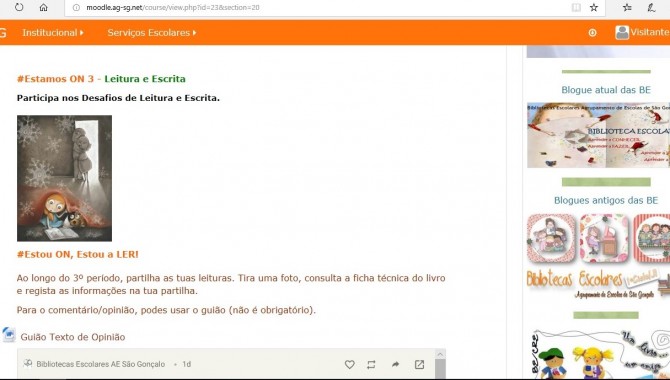 Neste dia comemorativo do Livro, 23 de abril, as Bibliotecas Escolares do Agrupamento de Escolas de S. Gonçalo lançam o desafio #Estou ON, Estou a LER e convidam os alunos e seus familiares a partilharem as suas leituras, ao longo deste período letivo.