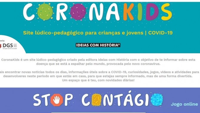 CoronaKids é um site lúdico-pedagógico criado pela editora Ideias com História com o objetivo de te informar sobre esta doença que se está a espalhar pelo mundo, provocada pelo novo coronavírus.