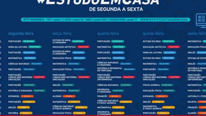 Durante o 3.º período letivo, haverá aulas de 30 minutos emitidas pela televisão com conteúdos pedagógicos temáticos, lecionados por professores e destinam-se aos alunos do 1.º ao 9.º ano de escolaridades.