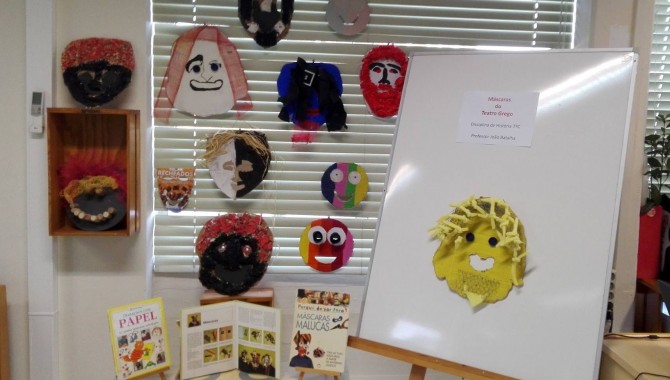 Poderá visitar na Biblioteca da Escola Básica de Maxial uma exposição de máscaras do teatro grego, elaboradas no âmbito da disciplina de História com o professor João Batalha e os alunos da turma 7º C.